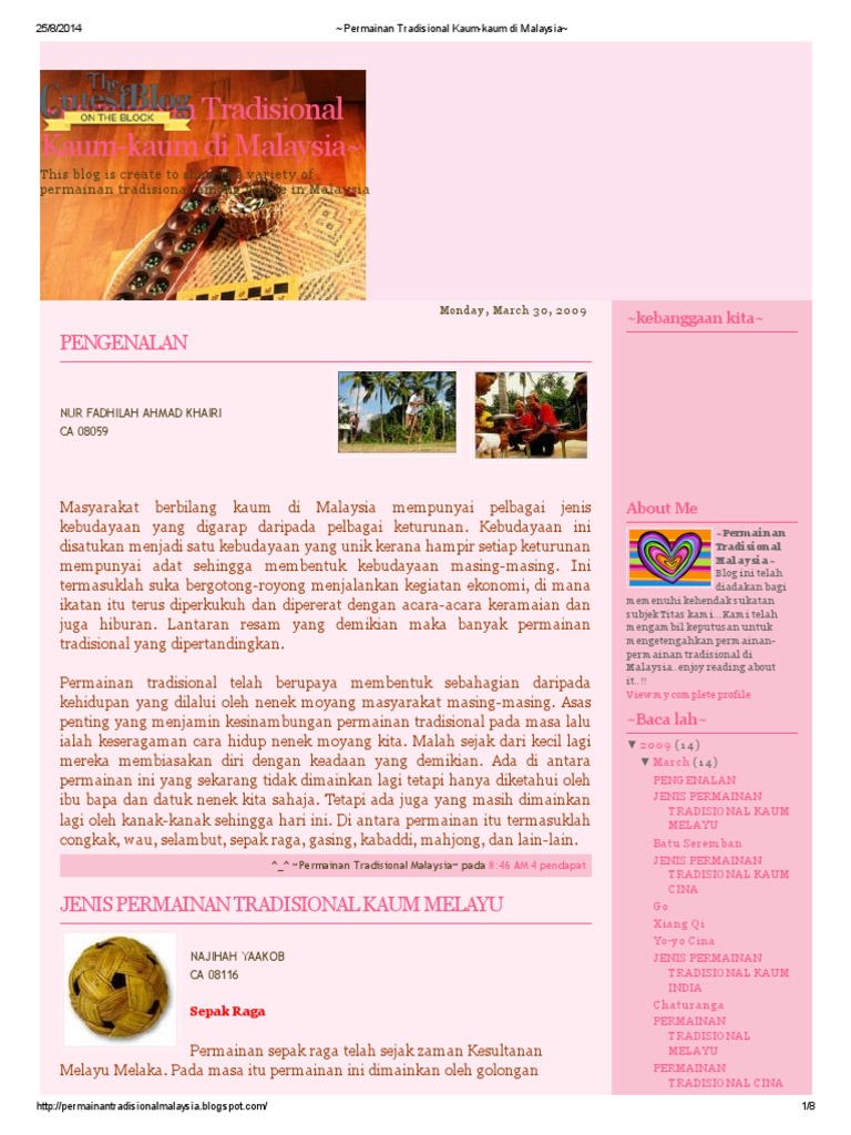Posted by unknown at 23:43. Video ini dibuat sempena tugasan berkumpulan bagi subjek hubungan etnik (sadn 1043). Selamat datang ke blog permainan tradisional di malaysia.tujuan blog ini dibina adalah sebagai satu perkongsian kepada semua pembaca blog yang mencari carian maklumat berkaitan permainan tradisional di malaysia seperti permianan congkak,gasing,batu seremban,guli dan sepak raga. You can create one as well, really easily.get started. Terdapat empat (4) permainan tradisional yang kami mainkan iaitu.