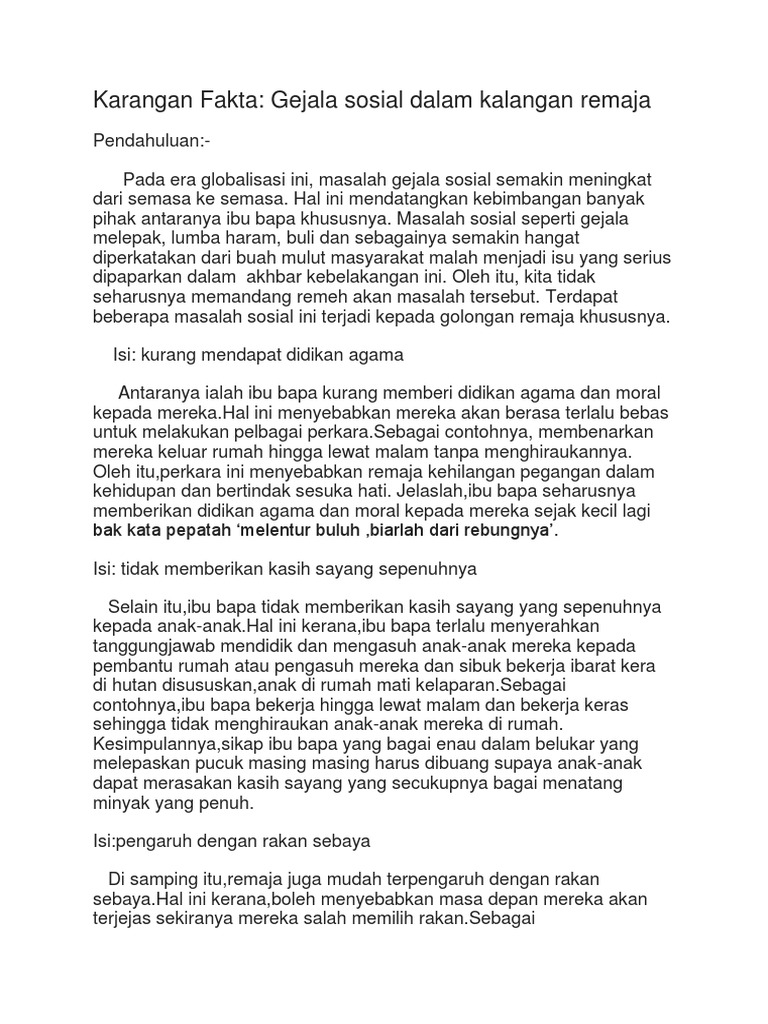 Karangan Gejala Sosial Dalam Kalangan Remaja : Punca Gejala Buli Dan Langkah Untuk Mengatasinya : Powtoon is a free tool that allows…. Massa dalam gejala sosial remaja pada hari ini tidak boleh dipandang ringan kerana kandungan. Di malaysia, remaja merangkumi lebih daripada separuh keseluruhan penduduk. Masalah gejala sosial di dalam kalangan remaja pada hari ini akan memberikan kesan dan impak yang begitu besar dalam diri individu, masyarakat dan negara. Persoalannya, apakah yang boleh dilakukan untuk menyelesaikan masalah sosial dalam kalangan remaja ini? Dinyatakan oleh cik darshayani tadi.